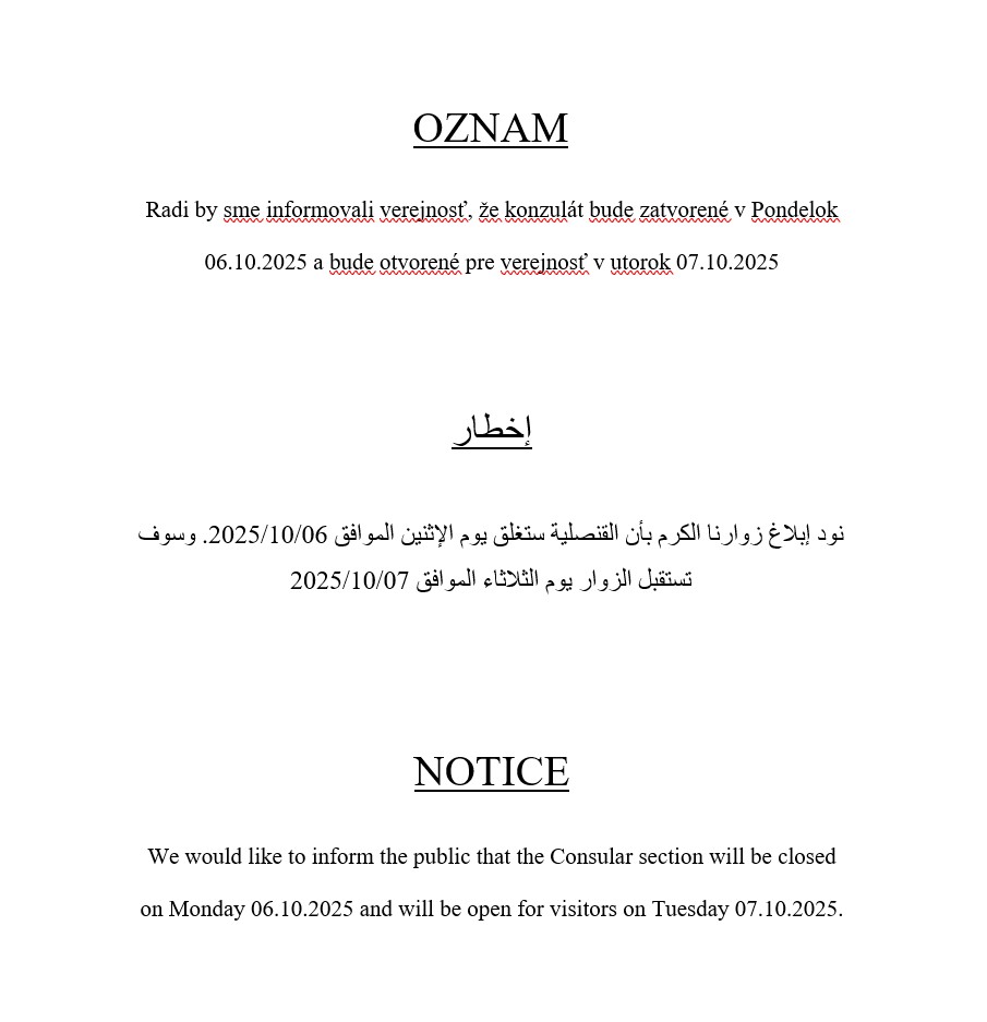 Radi by sme informovali verejnosť, občanov nasledujúcich krajín: